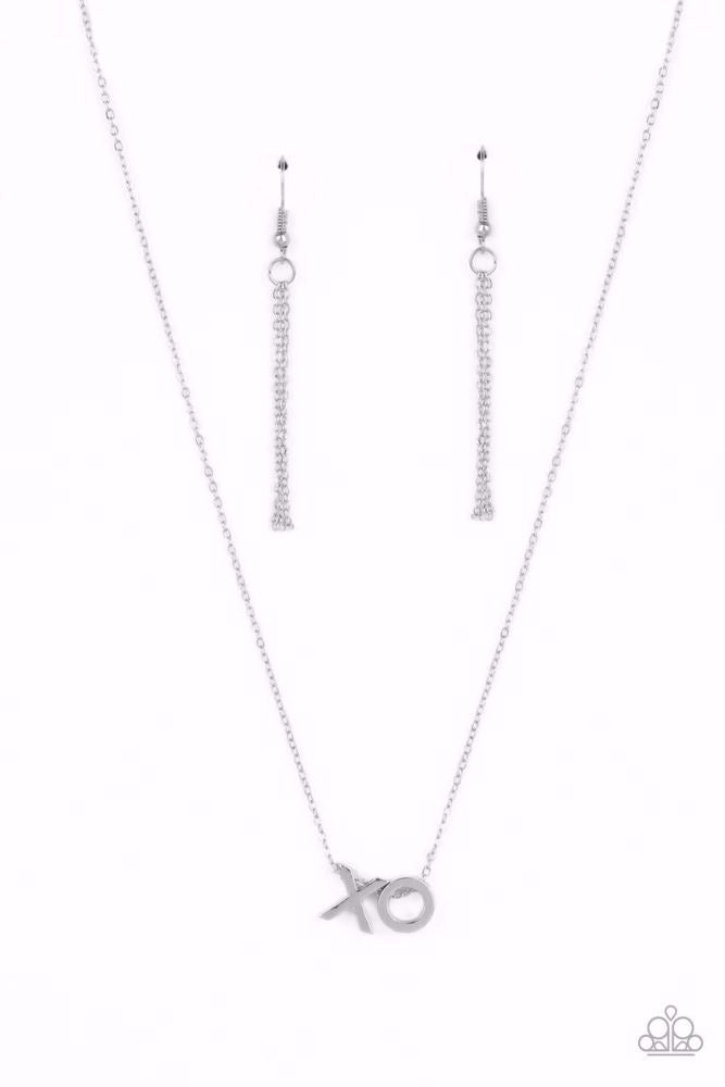 A silver letter "X" and a letter "O" in the same metallic sheen, slide along a classic silver chain, creating a dainty, fun-loving design. Features an adjustable clasp closure.