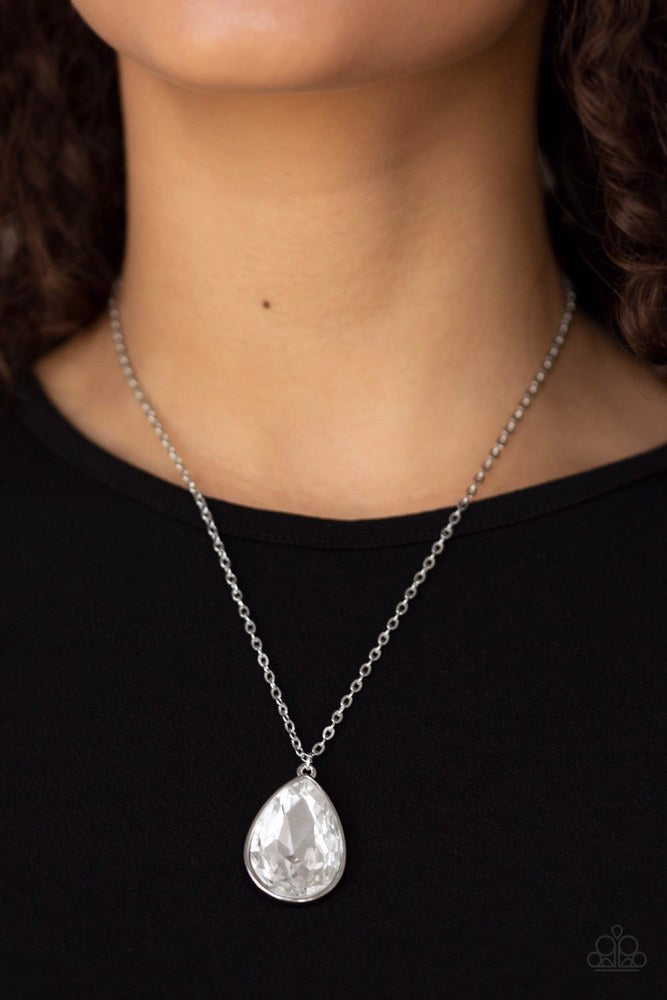 Featuring a sleek silver frame, a dramatic white teardrop gem swings below the collar for a glamorous look. Features an adjustable clasp closure.