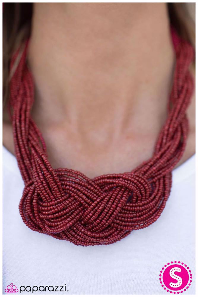 Countless strands of red seed beads are twisted and knotted together to create an unforgettable statement piece. Features an adjustable clasp closure.